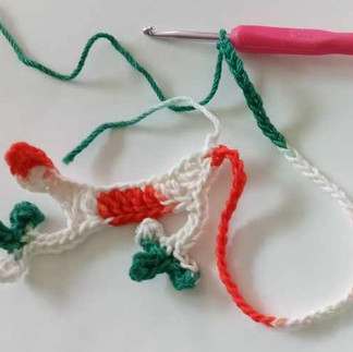 Once your back to the body, it’s time to do the other side of the lizard. Sl st in 1st ch of body, hdc in next ch, dc in each of next 2 ch. Then, repeat the steps for leg 1 above to complete leg 3. Continue crocheting the body with dc in each of the next 8 ch.
